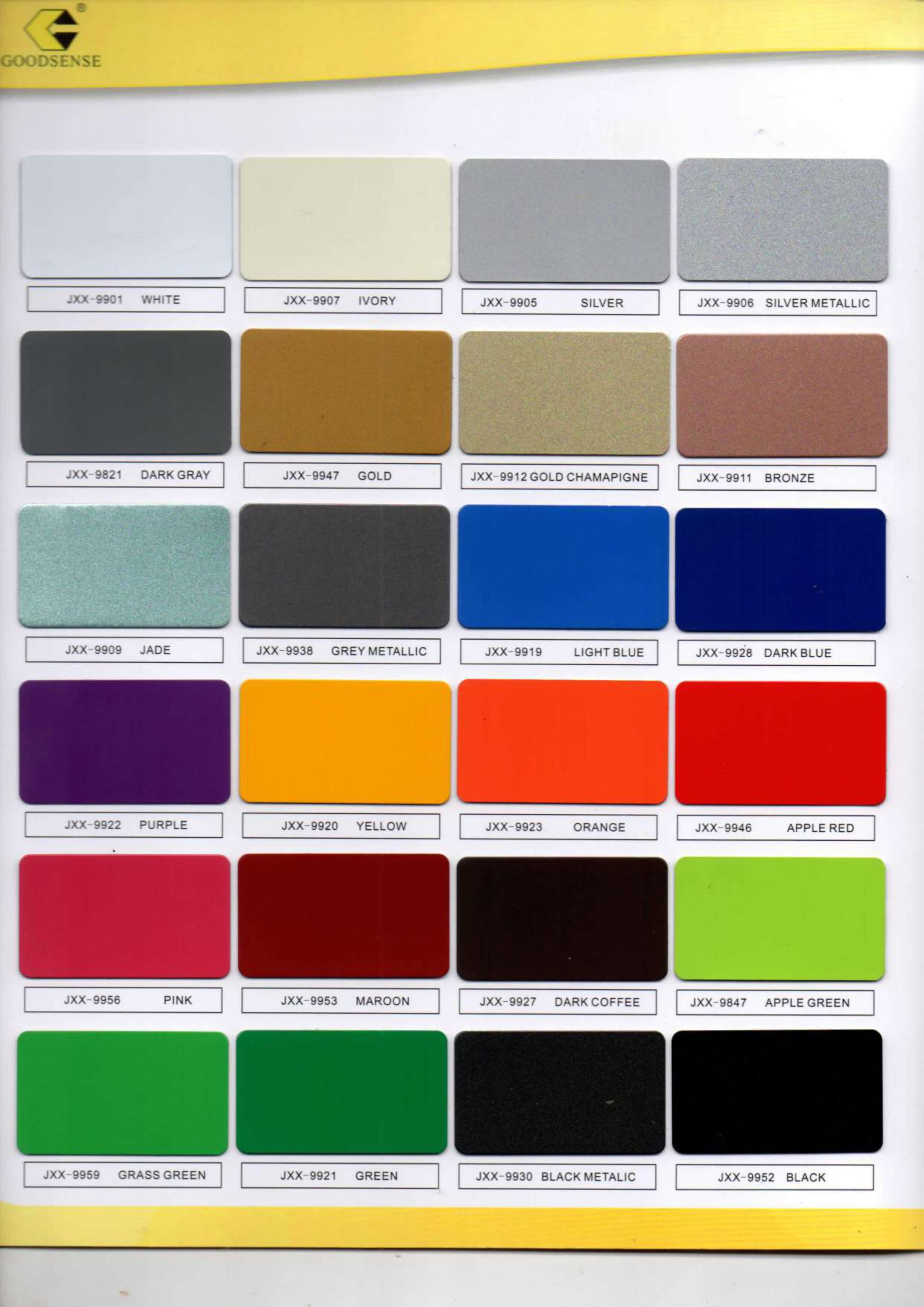 Merek GOODSENSE adalah merek ACP yang di produksi asal negara China. GOODSENSE telah berhasil mendapat sertifikasi dari Beijing World Standards Certification Center, yaitu ISO90001 / 140001 dalam hal kualitas dan sistem pengelolaan lingkungan.