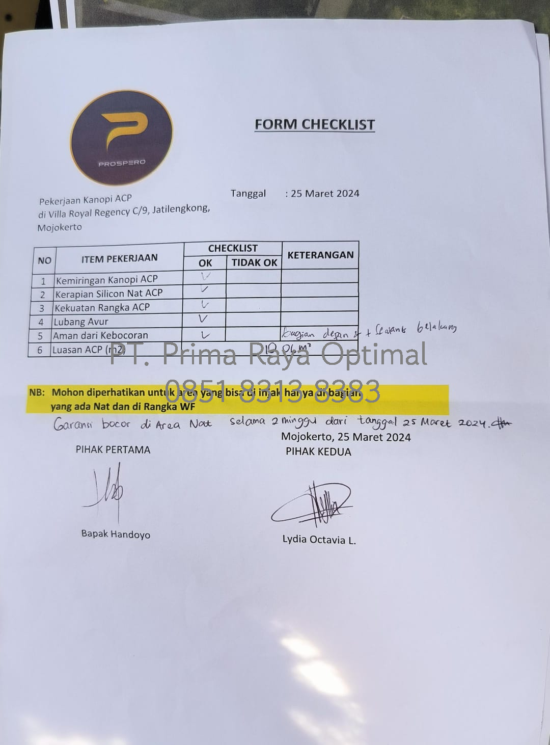 Kanopi Mojokerto - PT. Prima Raya Optimal